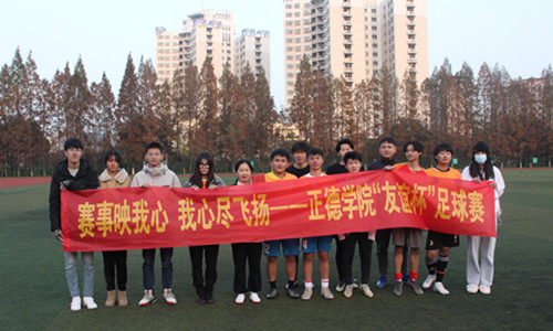 总决赛中,寒冷的天气挡不住大家的热情,比赛双方同学都使出全力,你争我抢。艺术设计与建筑工程系队员在各个位置上均占据了场上优势,最终以绝对实力获得本届足球赛冠军。