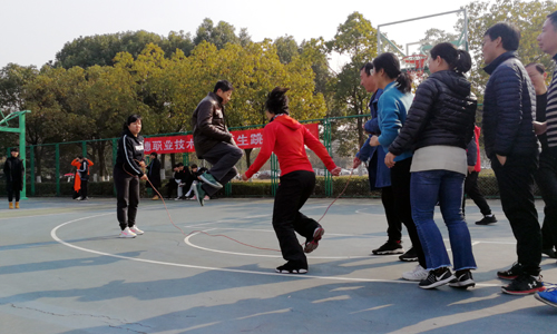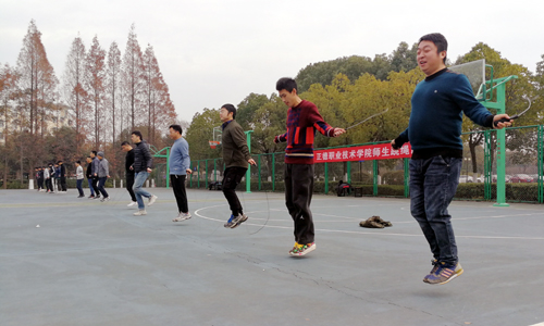 教工组也不甘示弱,经过激烈比拼,郑龙根、李杰、李浩文获男子单摇项目前三名,女子单摇项目前三名为刘丽、吴春凤、刘凤;男子双摇项目第一名为李柯伟,女子双摇第一名为刘翔。