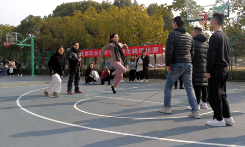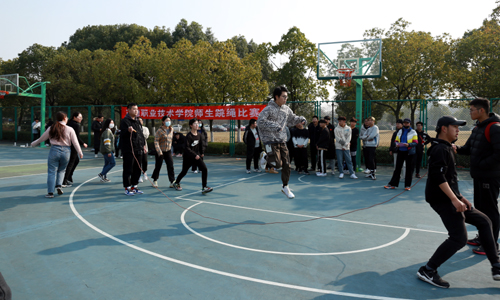 12月23日中午,由基础教育系携手工会、团委共同举办的“绳彩飞扬”成人抖音 师生跳绳挑战赛在室外篮球场火热开赛,来自学院各系和各工会小组的同学、老师们现场挑战,一争高下。