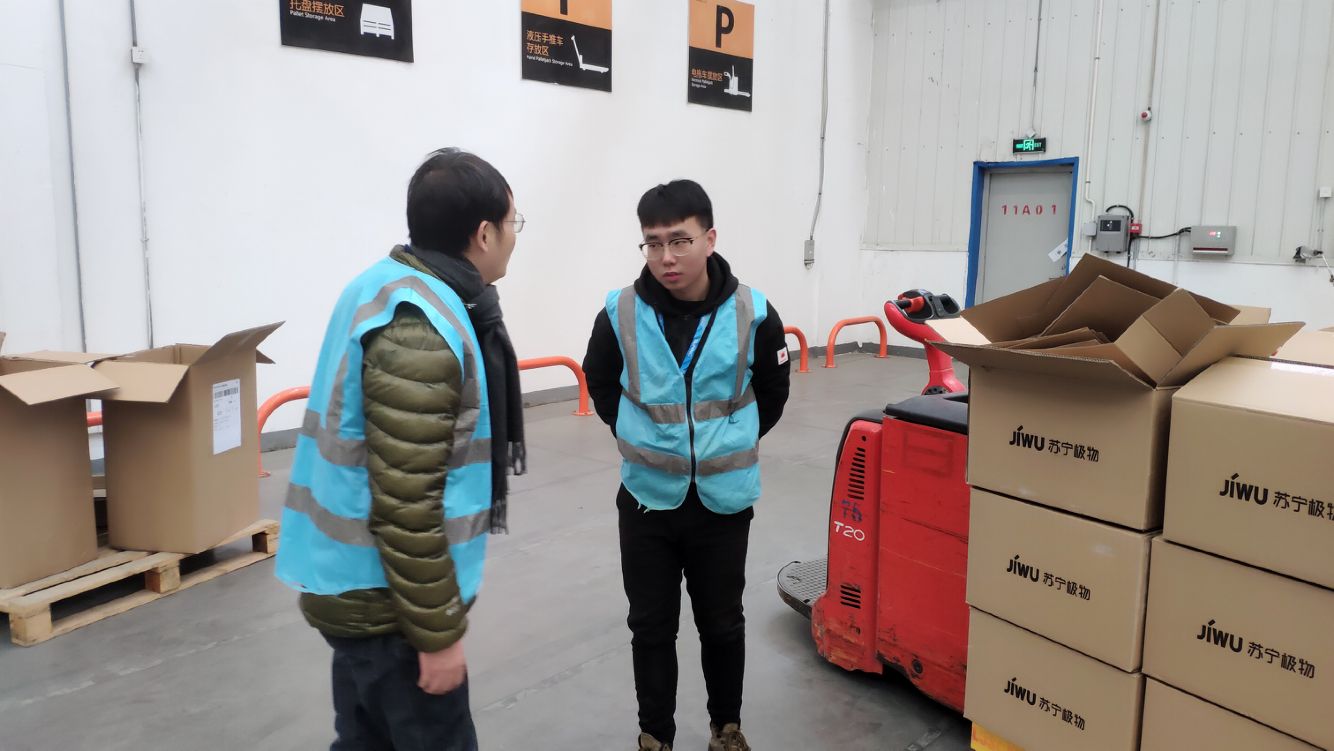 苏宁人事部张经理和其他职能部门的领导热情地接待来自正德的实习指导教师。 双十二刚过,物流部门的工作依旧繁忙。杨捷老师在张经理的陪伴下,来到多个部门,了解学生的顶岗实习情况,鼓励实习学生脚踏实地,认真工作,以出色的工作表现来完成实习工作。据物流部门领导介绍,我系学生在此次的顶岗实习工作中,成绩突出,尤其是在禄口冷链部实习的王康同学和邱光明同学,主动要求去条件艰苦,工作难度大的部门实习,在实习过程中,认真负责,爱岗敬业,受到领导的好评。目前,二位同学已进入招聘环节。