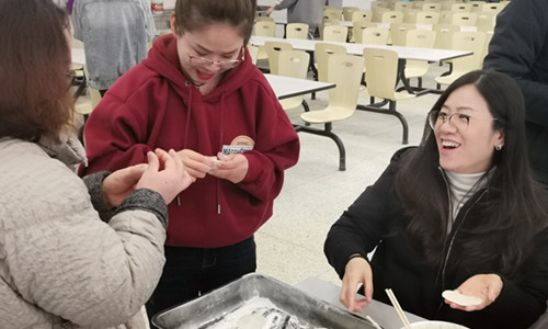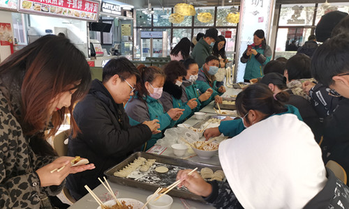 为欢度元旦、喜迎新年,1月2日,学生处在一食堂开展师生迎新年包饺子活动。副院长任慈、学生处全体与导师制所联络学生、宿管员代表、辅导员代表一同参与此次活动。
