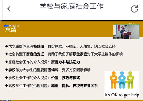 为学习资助工作先进经验,深入了解受助学生群体,提高精准资助和资助育人工作能力,3月30日下午两点,成人抖音 学生处资助管理中心老师和全体辅导员通过“腾讯会议”参加了2022年全国学生资助工作第六期线上培训--学校与家庭社会工作。