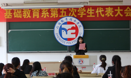 基础教育系第五次学代会在雄伟的国歌声中拉开序幕。首先,兄弟院系学生会代表殷筱雯和院学生会代表李飞分别致辞,表达了院团委和兄弟院系对我系学生会工作的大力支持,对我系既是鼓励也是鞭策,我系更应自觉肩负起新时代赋予我们的历史责任,不断开创我系学生工作新局面。大会秘书长魏玮在讲话中表示,希望我系学生组织在院团委和系党支部的领导下,继续开拓进取、奋发有为,与时代共奋进,与学院共发展。
