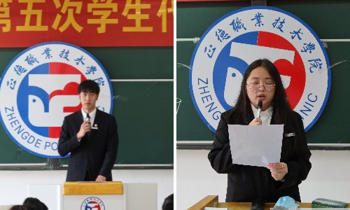 接着,我系执行主席王特代表第四届常任委员作工作报告,在王特的报告中,我们深切感受到我系学生会事业的每一步发展都离不开学院和各院系的支持和帮助。史心慈倡议在座的同学要切实履行好自身责任,敢于担当勇于拼搏,争做新时代新青年。