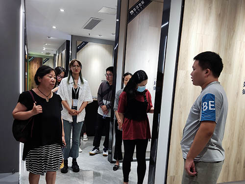 考察过程中,谢岚一行还看望了在铭望装饰实习的艺建系学生,亲切地向同学们了解工作和生活情况,在得知同学们被有计划的安排学习并得到良好的锻炼,现场观看了他们岗位能力汇报,肯定了他们的学习成果。考察结束后,谢主任向铭望装饰领导提出来校参观考察邀请,希望通过双方不断了解,进一步拓宽合作模式,并要求随行人员进一步做好岗位实习指导工作,修订校企合作内容,继续跟进校企合作的建设工作。