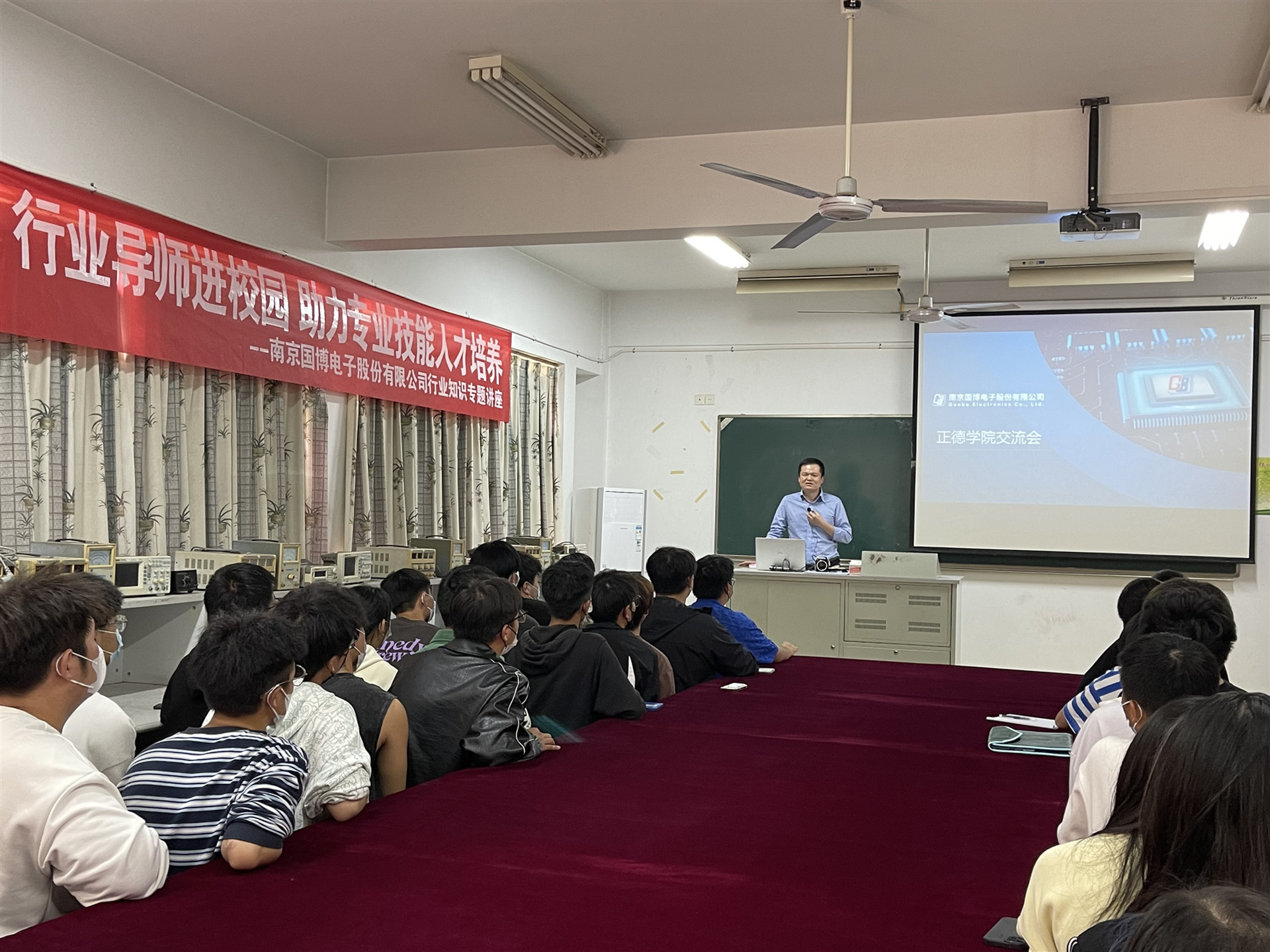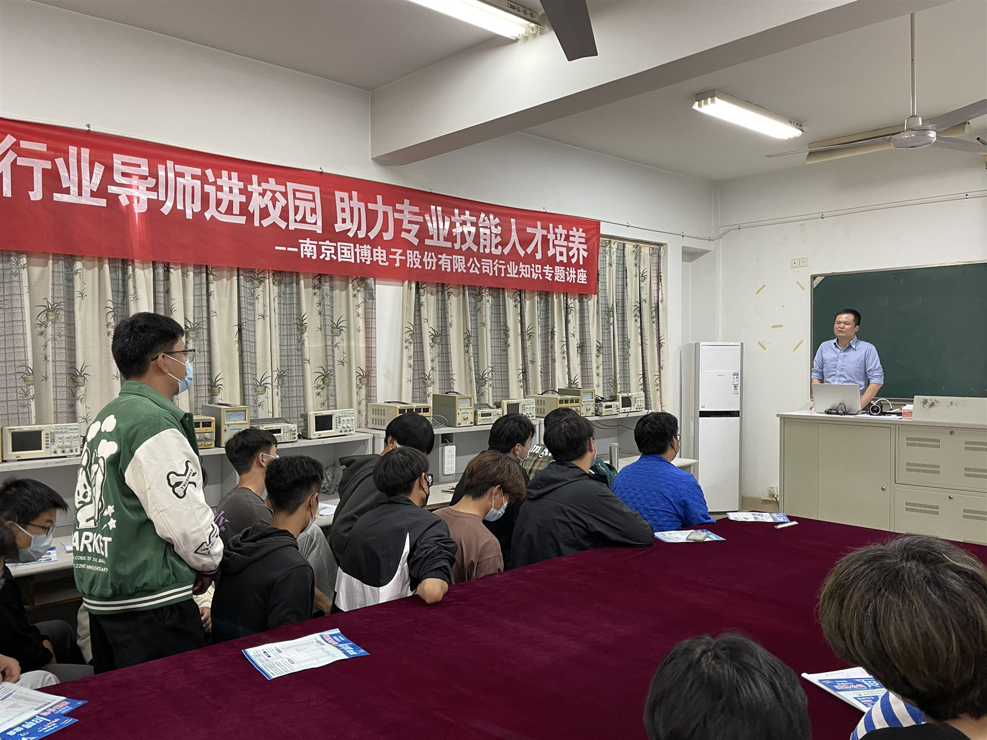 11月10日下午,南京国博电子股份有限公司人力资源部总经理王家波受电子与信息技术系邀请,来成人抖音 面向2022级大一新生开展了一次行业知识专题讲座,助力成人抖音 专业技能人才培养。