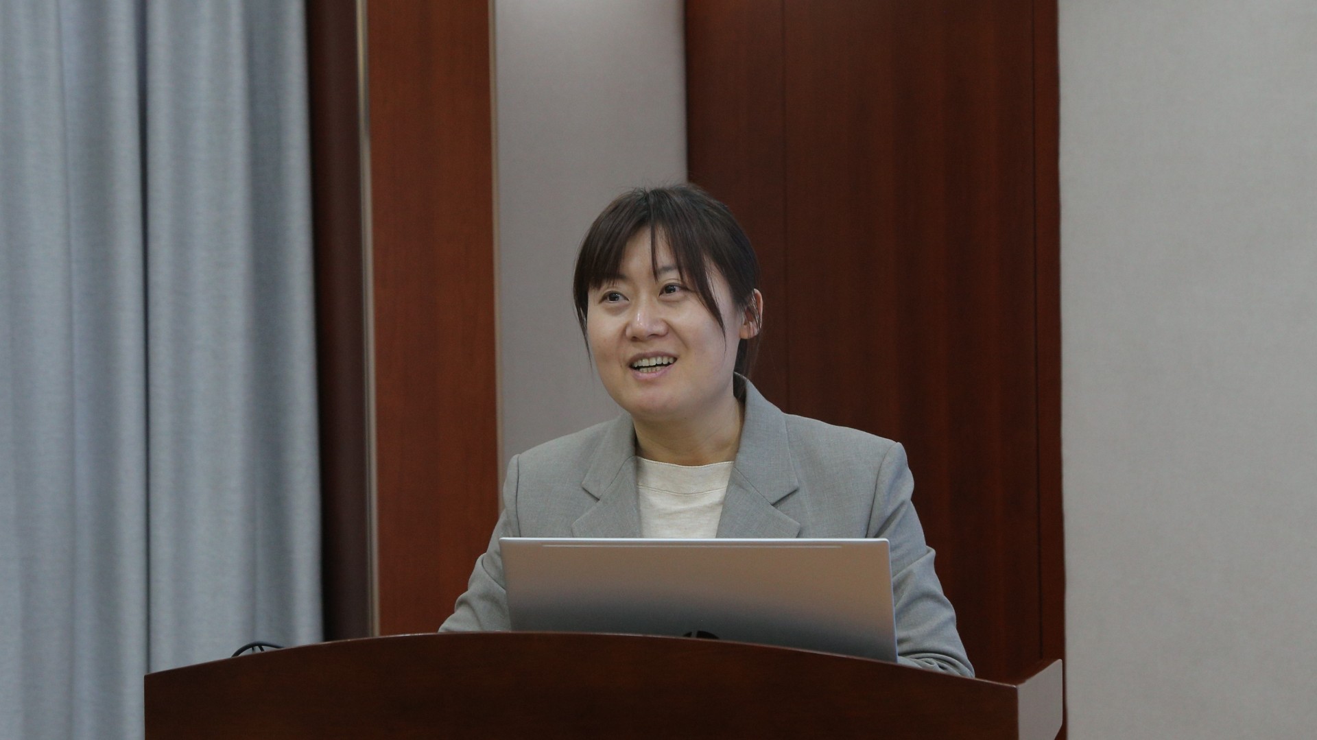 周卫老师的培训主题为“专业课程教学中课程思政元素的挖掘与融入路径——以建筑室内设计专业为例”。周老师结合自身建筑室内设计专业从开展课程思政的必要性、课程思政教学改革理念与整体思路、课程思政改革举措、课程思政元素的挖掘和融入路径等方面,从课程、毕业设计、技能竞赛、实习实训等不同角度,生动形象地为老师们讲解了将思政元素有机融入专业教学与育人的方式方法,指导老师们要根据不同专业人才培养特点设计和开发融入教学内容的课程思政元素,潜移默化地对学生进行价值引领,做到润物细无声。